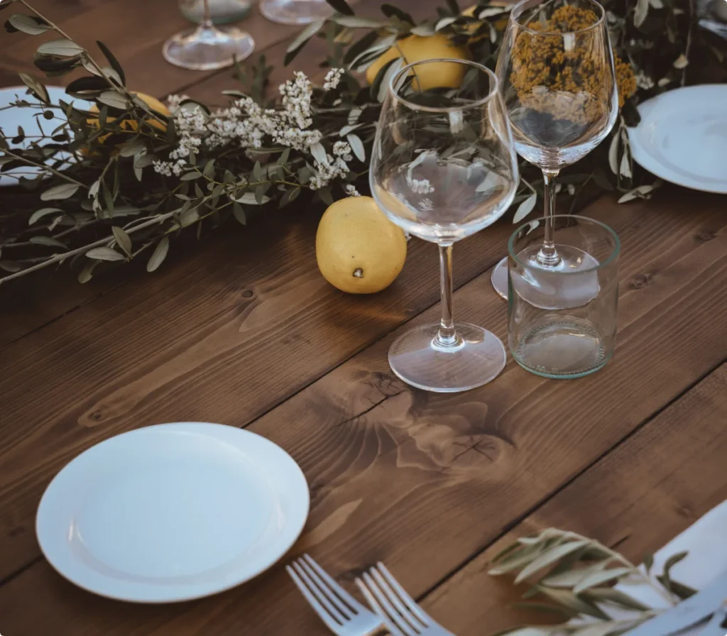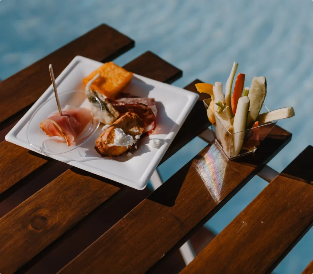 For lunches, dinners, and receptions, we rely on the chefs of our high-level in-house restaurant. We use seasonal organic ingredients from our own gardens, minimizing the need to purchase external produce. From homemade pasta to grilled meats, to pizza parties, everything is prepared on-site with passion and paired with wines from our traditional cellar. The magnificent view of the hills is the cherry on top!