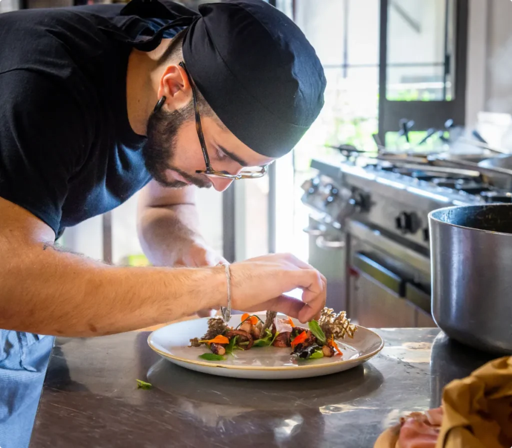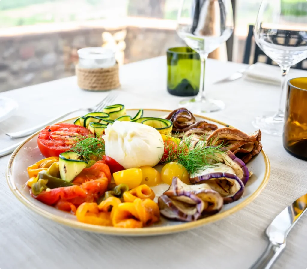 I nostri chef compongono i piatti sulla base dei prodotti freschi del territorio. Limitiamo gli ingredienti che vengono dall’esterno per concentrarci sui veri sapori toscani. Diamo priorità e valore agli ingredienti di nostra produzione come vino, olio, ortaggi, aceto e farina ai Grani Antichi di Montespertoli. L’obiettivo è costruire un percorso gustativo nel quale dominano gusto e genuinità.
